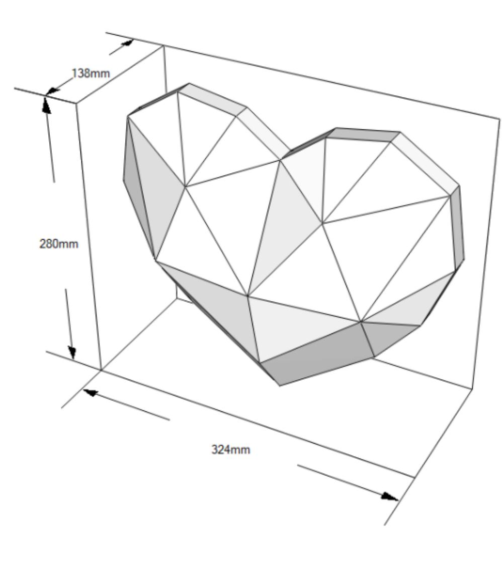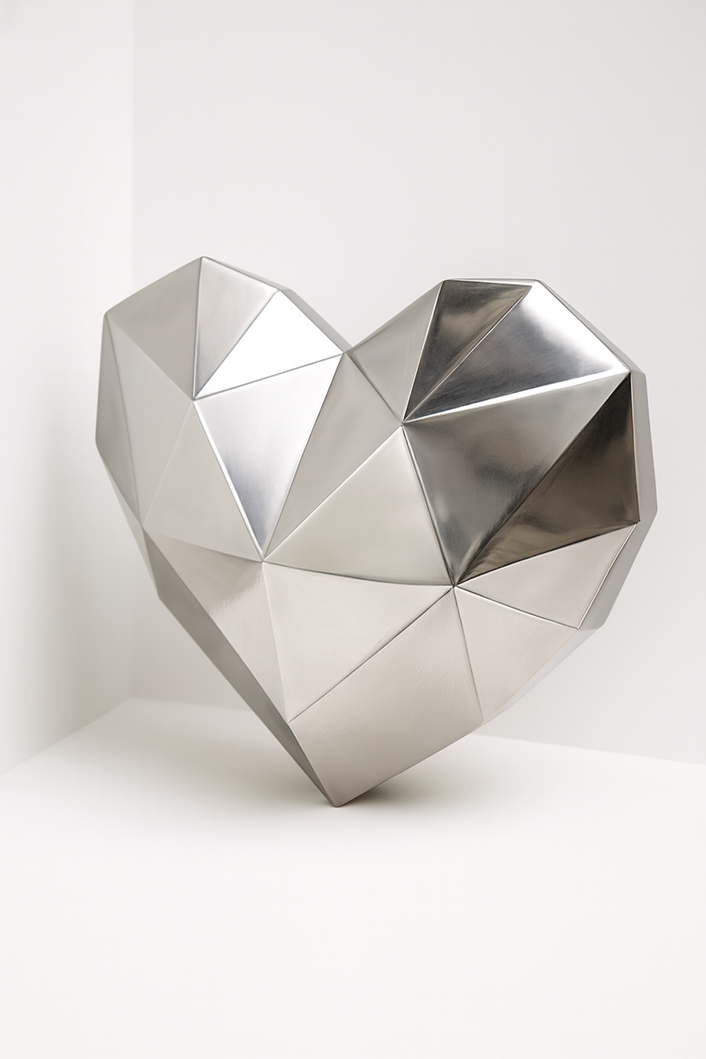 Le Cœur Polygonal a été créé en tôle d'acier découpée au laser, pliée, soudée et polie dans différents finis qui mettent en valeur ses facettes géométriques. Son design reflète émotion, équilibre et force intérieure.