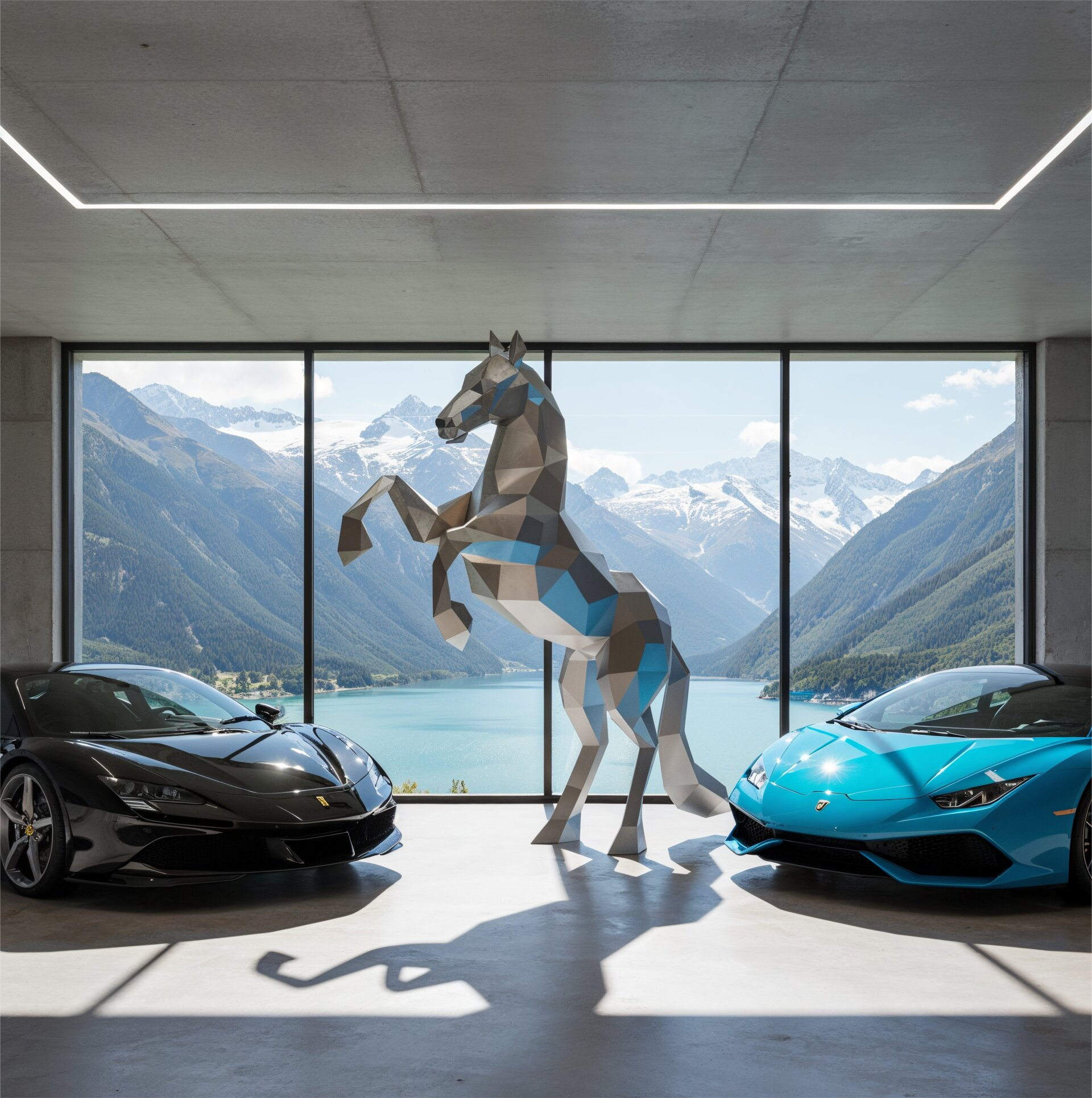 L'inspiration provient du Bietschhorn, l'une des montagnes les plus majestueuses du Valais, reconnue pour son profil pyramidal qui s'élève avec imposance au-dessus de la vallée du Rhône. Sa présence est synonyme de force et d'équilibre naturel. Cette même grandeur se reflète dans le Cheval 185, qui s'érige comme un symbole de vitalité et d'esprit indomptable, en parfaite harmonie avec le caractère alpin.